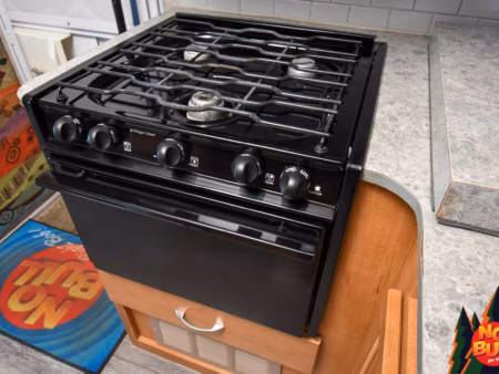 Later that afternoon, parked beside the ocean with the waves crashing in the distance, Grandma calls everyone into the kitchen. The 3-burner stove crackles and blurps as she shows the grandkids how to flip pancakes just right, their laughter mixing with the smell of butter and maple syrup. The oven keeps a cobbler warm while they set the table at the booth dinette, the wide window framing the coastline like a postcard. After the meal, the kids take turns at the dual sink, washing and rinsing as Grandpa dries, each of them peeking out now and then to watch the tide roll in.