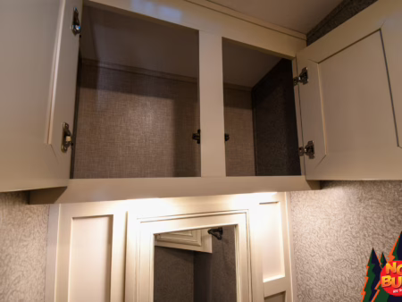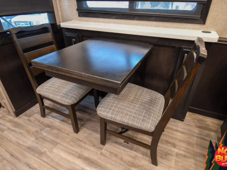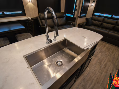 Cheers erupt sending birds scattering through the air as the fellas catch the game on the exterior TV (not tested), the 2022 Pinnacle 36FBTS fifth wheel standing tall and proud under the setting sun. Someone closes the door shut, “Leave the boys to their own devices,” they snicker.