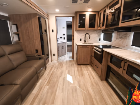 NOTE: Trailer as Shown. Selling Price is $58,999 plus GST and cost & charges associated with financing. Weekly payment is based on 8.99% (OAC) with $2500 down and includes tax. Down Payment & Interest Rate may vary based on personal credit history. Payment shown is based on a 60-month term, 216-month amortization at 8.99% Apr. Total cost of borrowing over the term is $24,360.75 – But don’t let that Scare You – most No Bull clients pay off their RVs early which results in further savings on interest as all loans are open ended with no fees or penalties for early payout – Ask us for details.