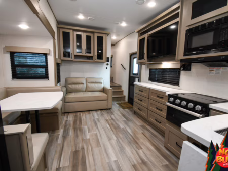 NOTE: Trailer as Shown. Selling Price is $74,999 plus GST and cost & charges associated with financing. Weekly payment is based on 8.99% (OAC) with $2500 down and includes tax. Down Payment & Interest Rate may vary based on personal credit history. Payment shown is based on a 60-month term, 240-month amortization at 8.99% Apr. Total cost of borrowing over the term is $31,671.39 – But don’t let that Scare You – most No Bull clients pay off their RVs early which results in further savings on interest as all loans are open ended with no fees or penalties for early payout – Ask us for details.
